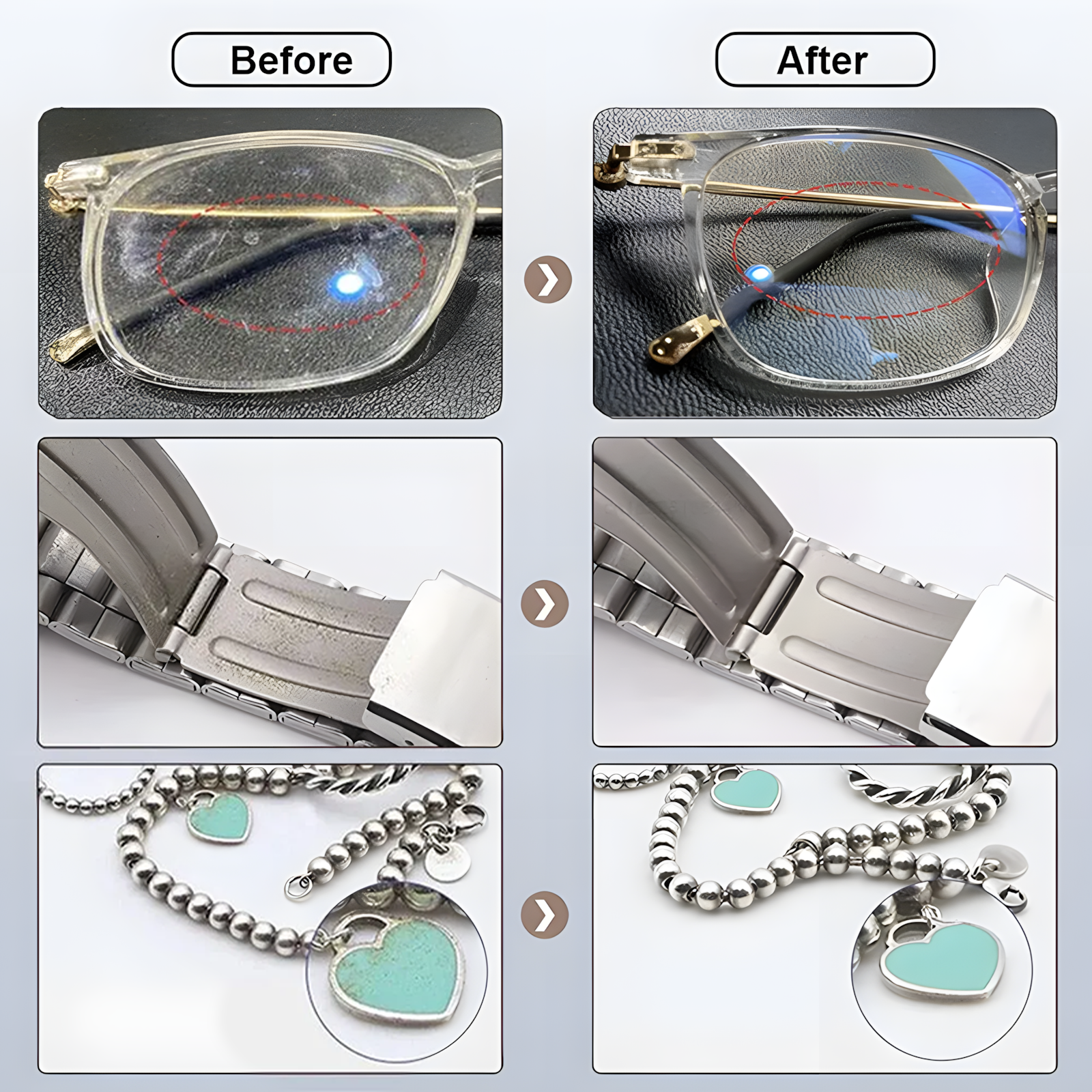 Suitable for glasses, jewelry, watches, and small metal accessories.